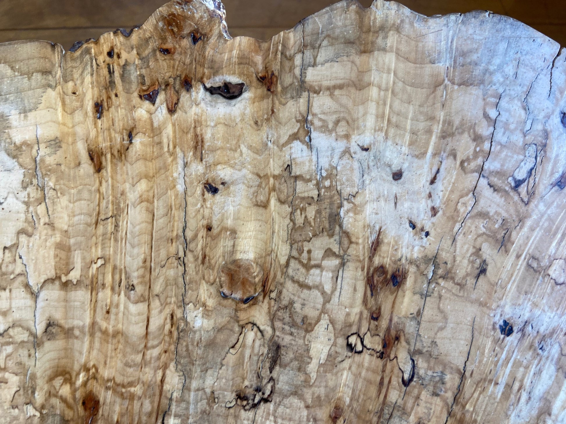 This incredible coffee table is made from a single slice of Silver Maple, set on a sturdy metal base. It has been polished to a perfect shine and professionally oiled to bring out the amazing colours and details of the wood.